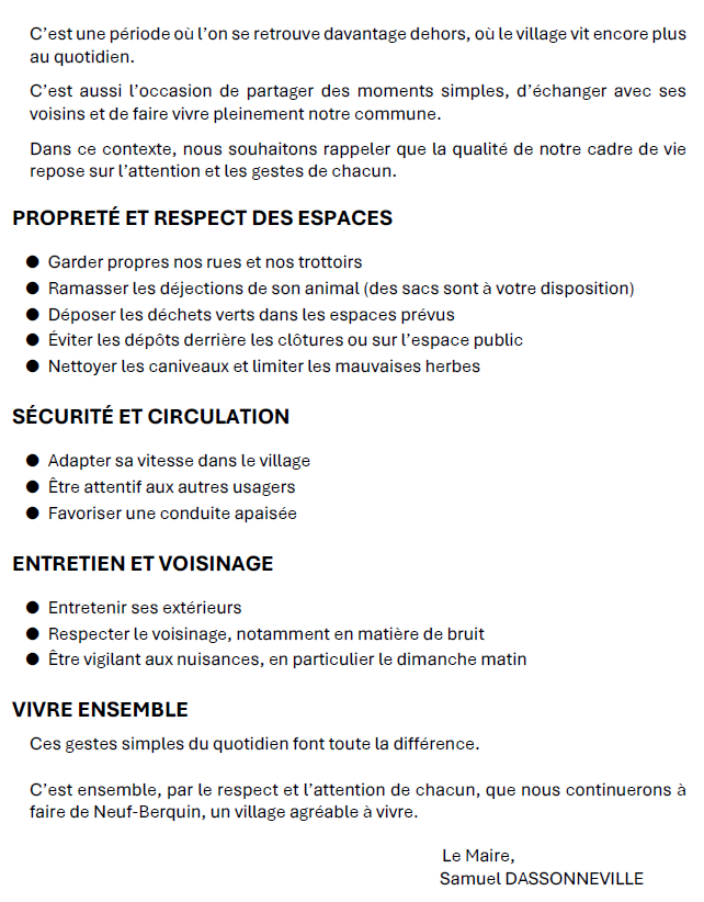 - Pas de permanence de Monsieur le Maire durant les vacances scolaires